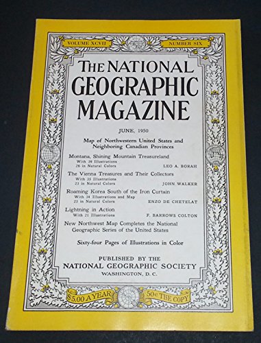 Washington, DC: The National Geographic Society, 1950. The June, 1950 issue, Volume XCVII, Number Six. Quarto, wraps, 138 pp. + ads. (i.e., pp 693-830 for the volume). Separate Map not included. Plenty of color photographs in NG by this time. Near Fine. Almost no trace of the seemingly ubiquitous light soiling to the covers (see scans). Nice copy. Montana, Shining Mountain Treasureland; The Vienna Treasures and Their Collectors; Roaming Korea South of the Iron Curtain; Lightning in Action. Nice vintage Coca-Cola ad on the back cover. Separate map not included here. L-PR1